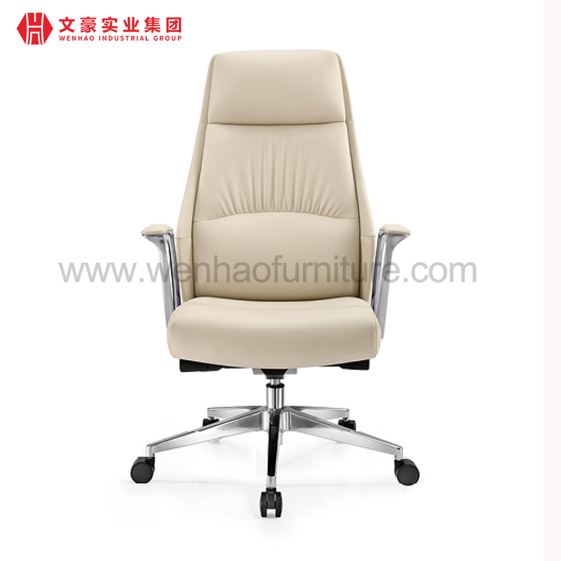 优雅高背办公椅带头枕白色皮革行政软垫办公桌椅