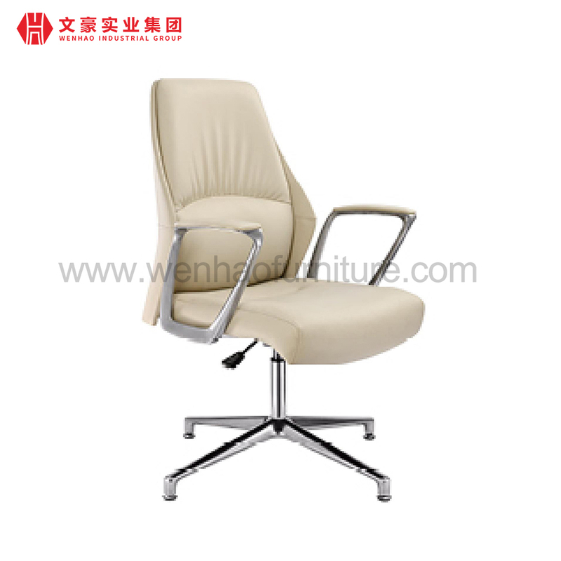 高端皮革行政办公椅奶油色旋转软垫专业办公桌椅,无轮